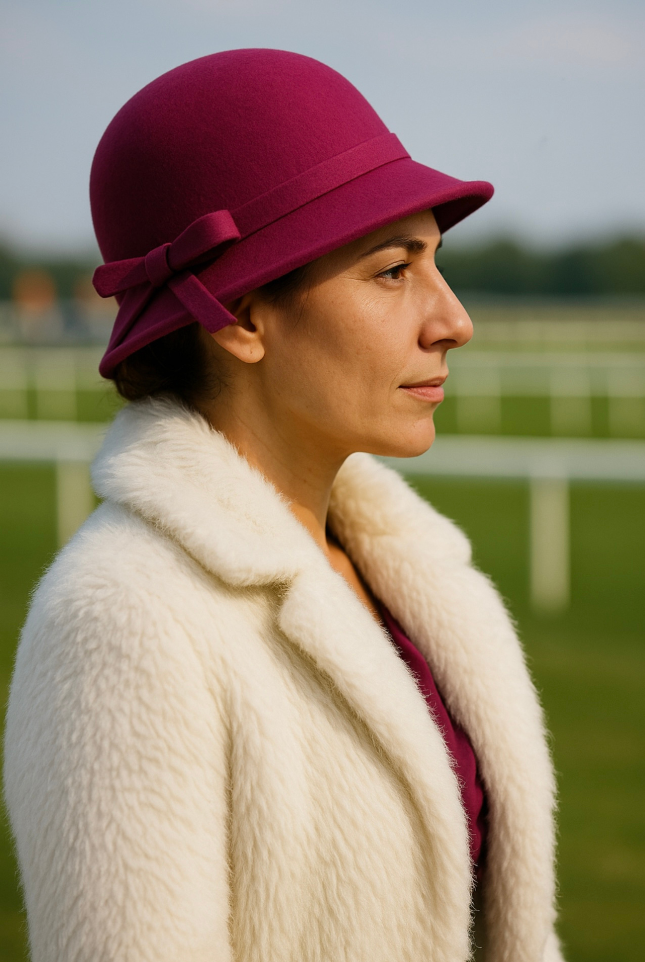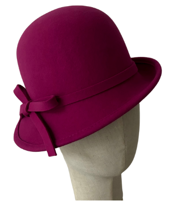 Introducing the Fuchsia Pink Cloche exquisite hat – A perfect blend of classic sophistication and modern flair. Crafted from luxuriously soft felt, this striking hat adds a playful yet polished touch to any outfit. The structured cloche silhouette echoes vintage charm, while the delicate bow at the back enhances its feminine elegance.