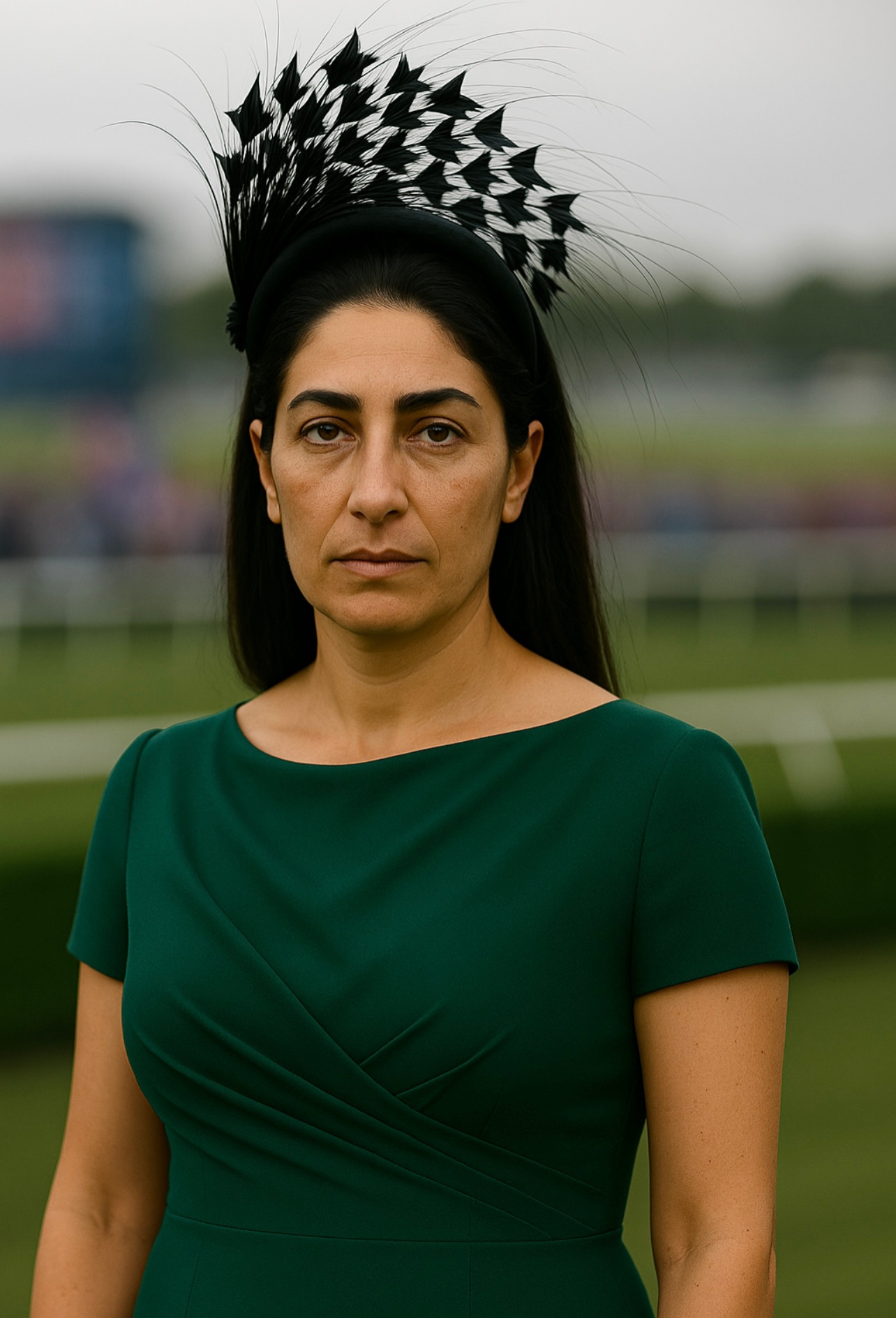 Add a touch of timeless elegance to your look with Nerissa. This Black Feather-Trimmed Velvet custom hat is designed for effortless sophistication. This stunning accessory features a wide velvet headband for a secure and comfortable fit, while the striking feather spray trim adds height, movement, and a touch of drama. Perfect for weddings, race days, and formal events, this chic, designer hat for women is a must-have for those who love refined yet bold style.