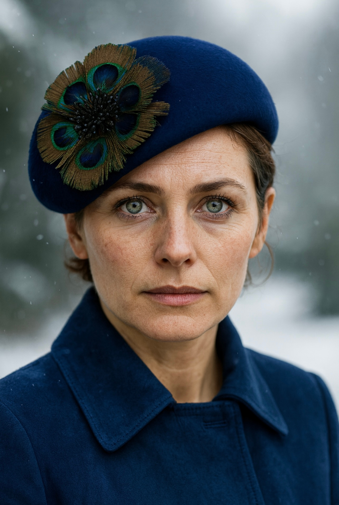 Introducing Seraphina, a striking creation that perfectly combines the rich, deep tones of navy with the iridescent splendor of peacock feathers. This headpiece for women captures both the majesty of the peacock and the sophistication of the deep navy base, creating a bold yet elegant statement piece.